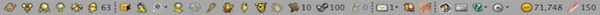 The Nethernet toolbar in the spring of 2009, your HUD for information warfare on the world wide web! So many buttons! There's around twenty-eight things you could click on here: tools - weapons - powers - community - communications.